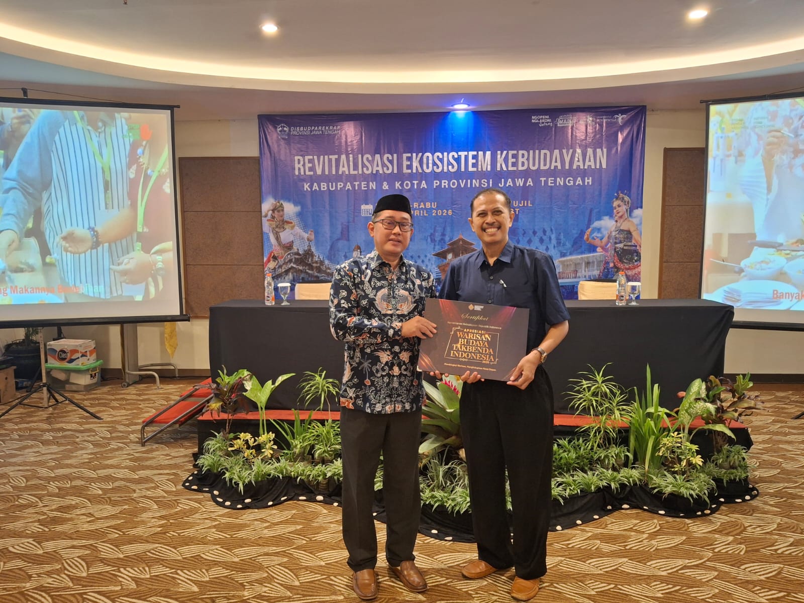 DINDIKBUD_PURBALINGGA_Kesenian Manongan, seni tradisi khas Kabupaten Purbalingga, resmi ditetapkan sebagai Warisan Budaya Takbenda (WBTB) Indonesia oleh Menteri Kebudayaan RI. Penetapan ini merupakan hasil dari proses panjang mulai dari pengusulan, identifikasi, verifikasi, hingga penilaian oleh tim ahli. Sertifikat penghargaan diserahkan di Semarang pada Selasa (21/04/2026) oleh Kepala Dinas Kebudayaan, Pariwisata dan Ekonomi Kreatif Provinsi Jawa Tengah, Dr. Ir. AR. Hanung Triyono, M.Si, dan diterima oleh Kepala Dinas Pendidikan dan Kebudayaan Kabupaten Purbalingga.